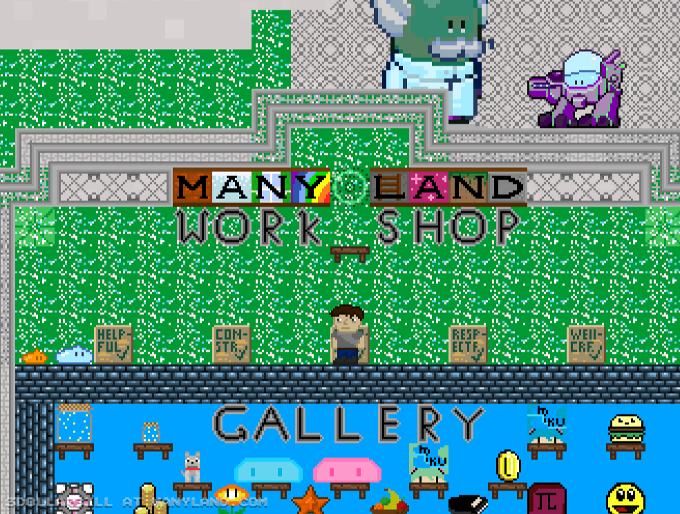 Unfortunately, Manyland – the universe we lived, scripted & drew together – had to close due to a lack of budget, which also meant a lack of budget for updates. Thanks to all of you and let us remember the good times with this Museum site! Together, in the 10 years from July 29th 2013 to February 29th 2024, we made over 800,000 areas, 6 million items, 900 million placements... and countless memories & friendships.