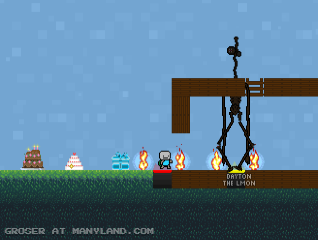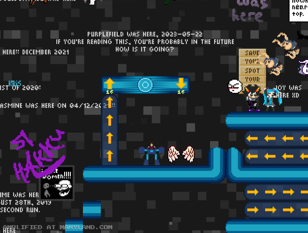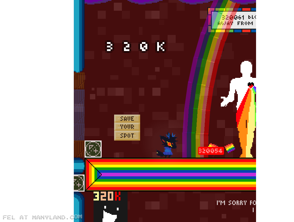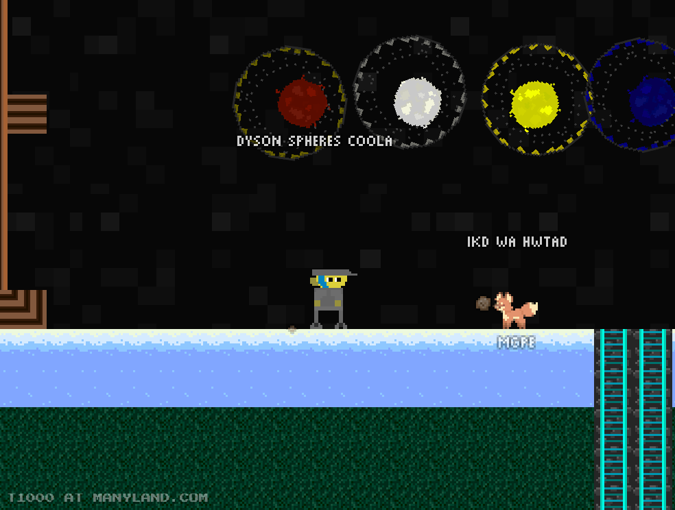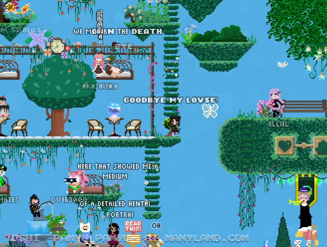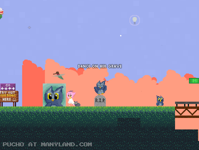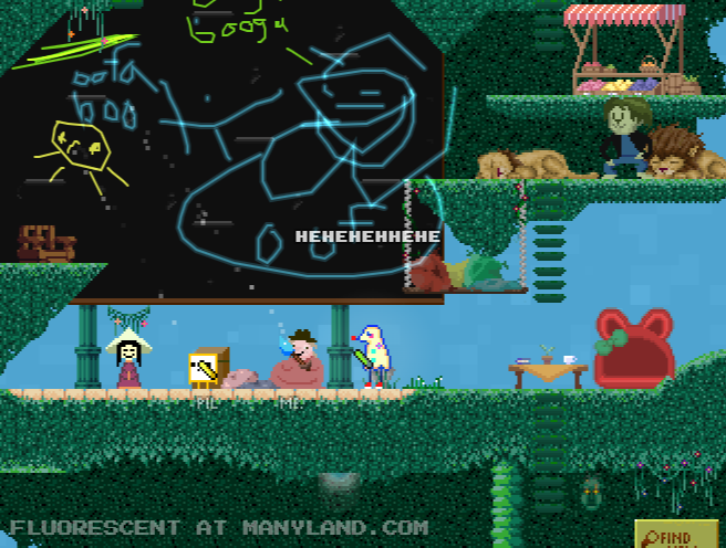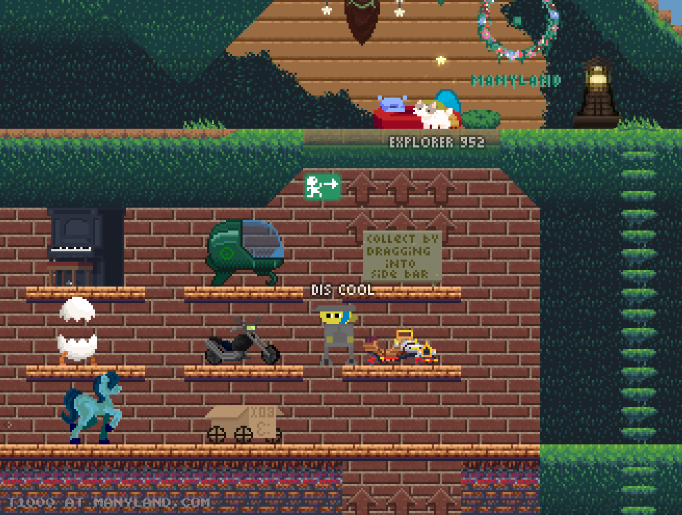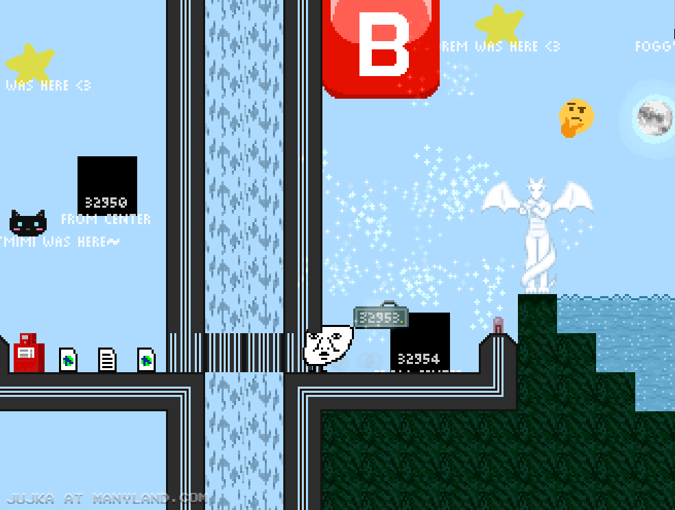 Unfortunately, Manyland – the universe we lived, scripted & drew together – had to close due to a lack of budget, which also meant a lack of budget for updates. Thanks to all of you and let us remember the good times with this Museum site! Together, in the 10 years from July 29th 2013 to February 29th 2024, we made over 800,000 areas, 6 million items, 900 million placements... and countless memories & friendships.
