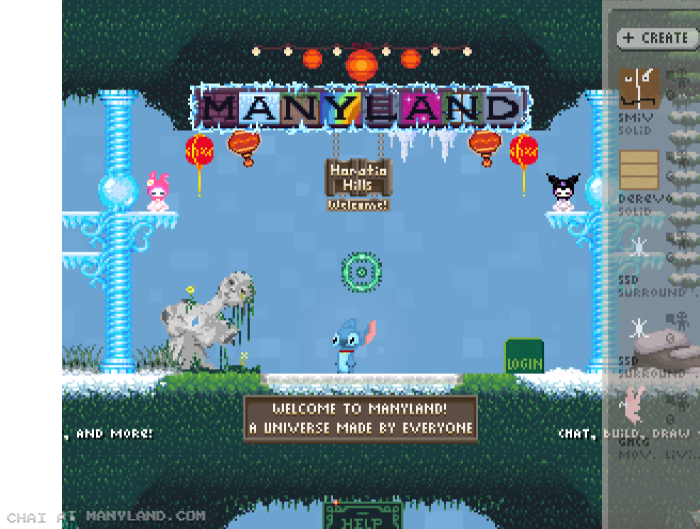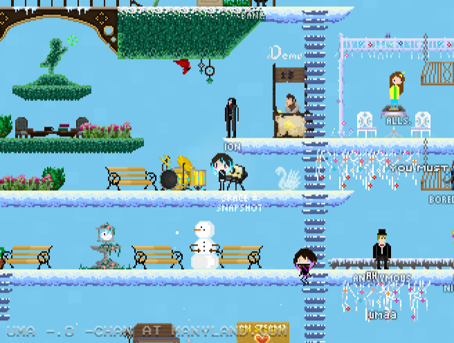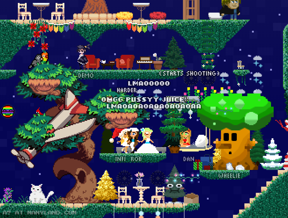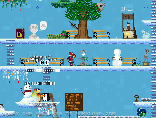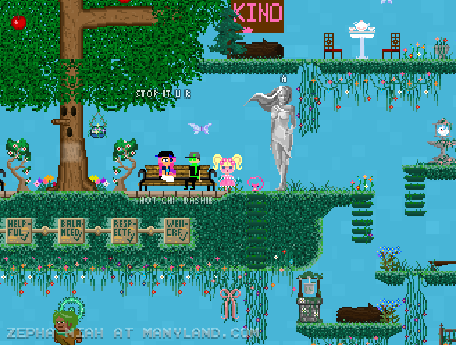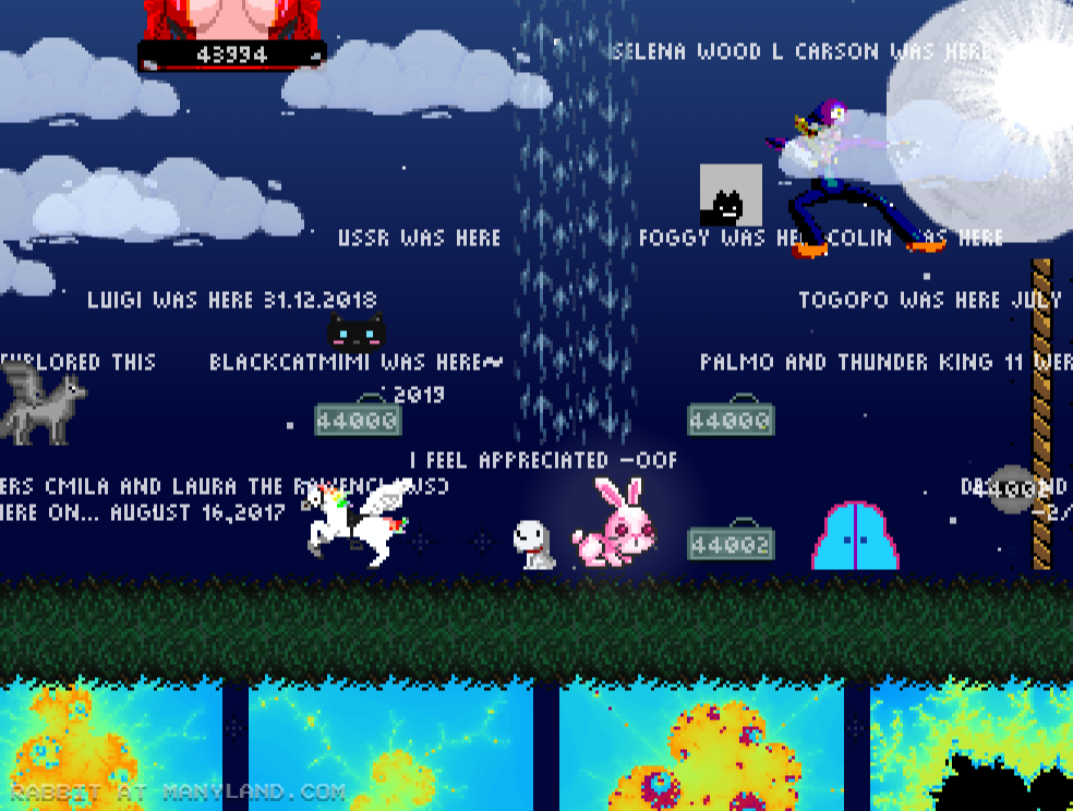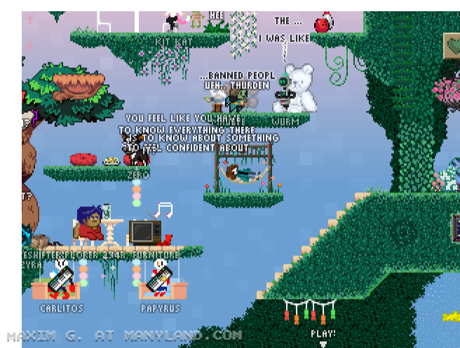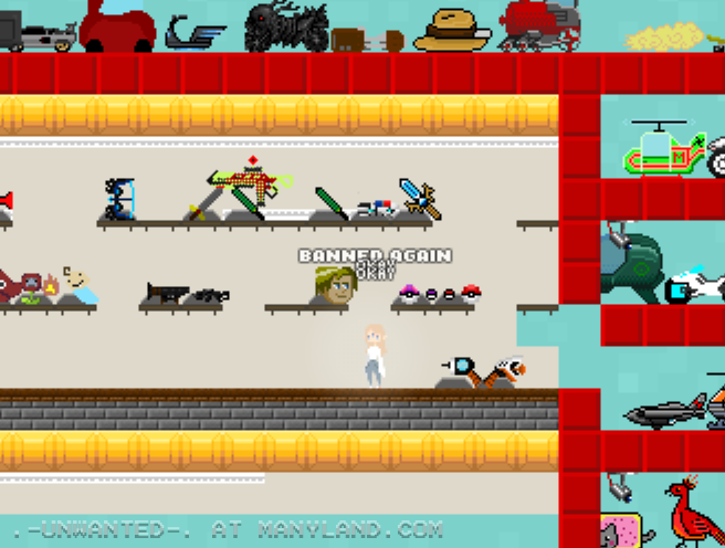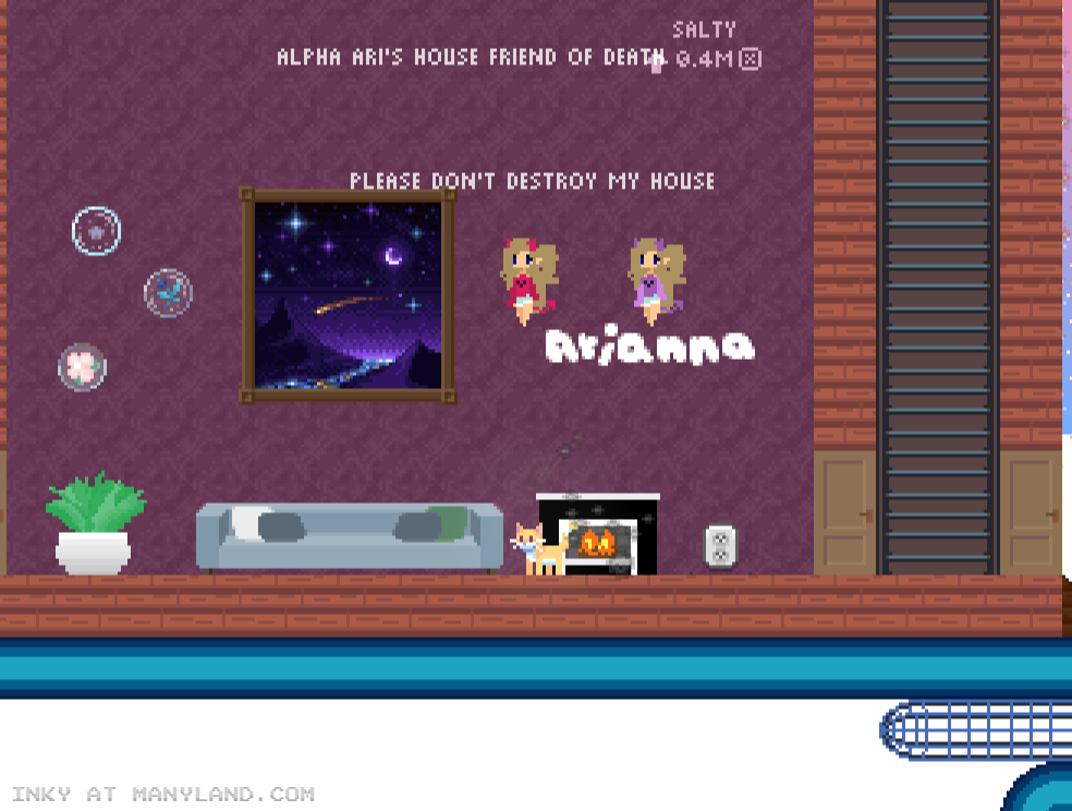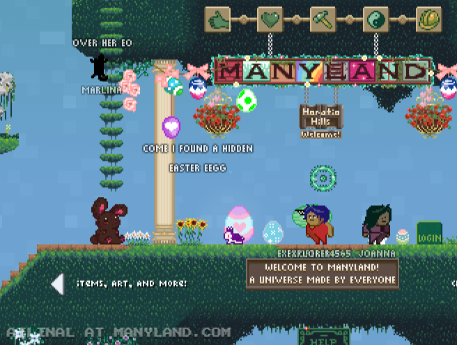 Unfortunately, Manyland – the universe we lived, scripted & drew together – had to close due to a lack of budget, which also meant a lack of budget for updates. Thanks to all of you and let us remember the good times with this Museum site! Together, in the 10 years from July 29th 2013 to February 29th 2024, we made over 800,000 areas, 6 million items, 900 million placements... and countless memories & friendships.