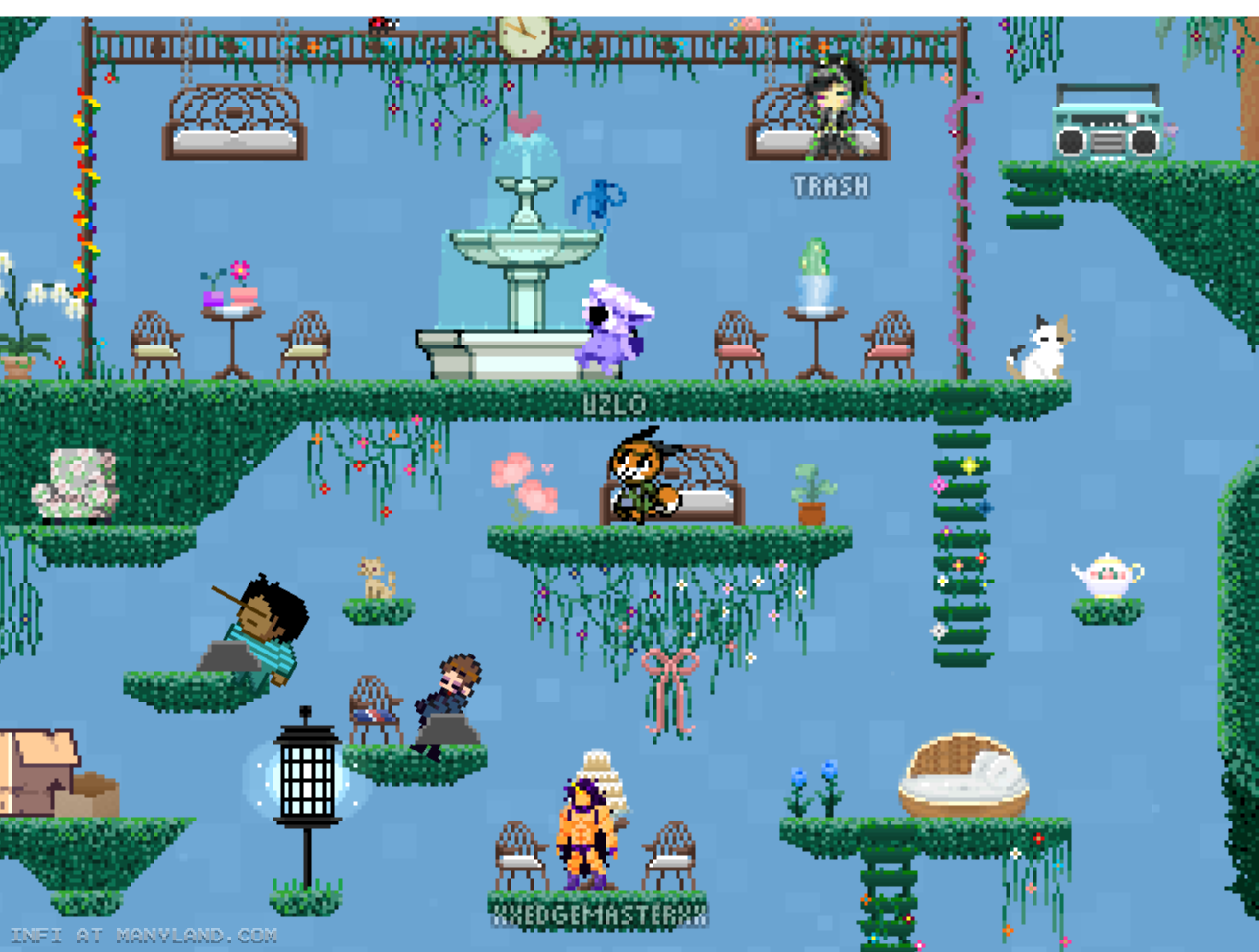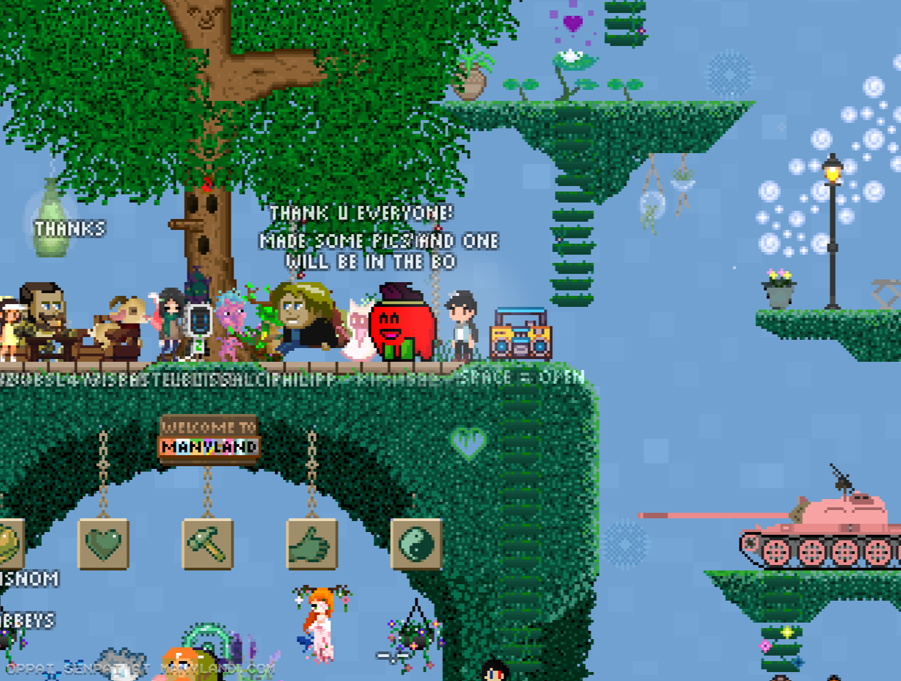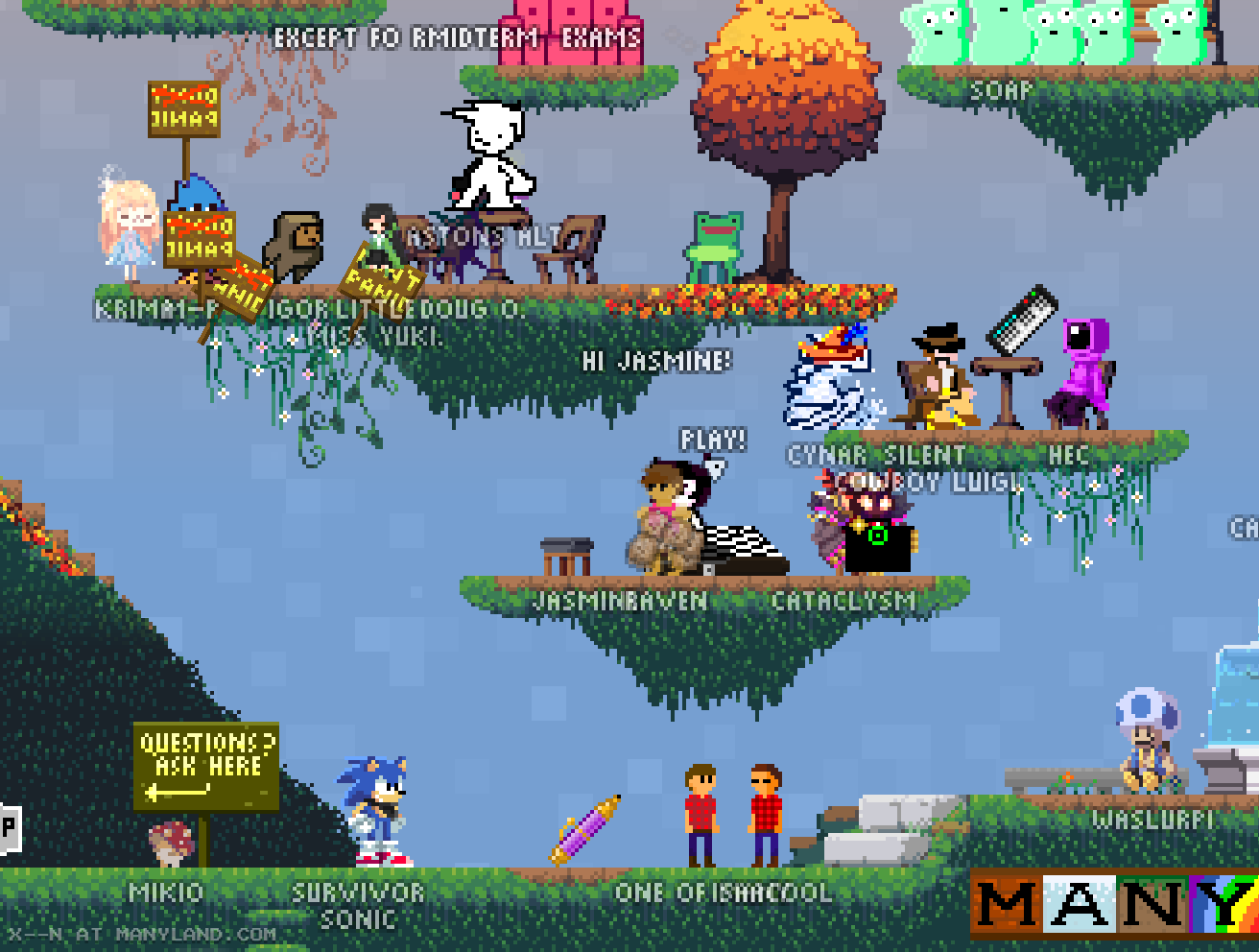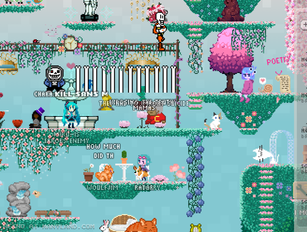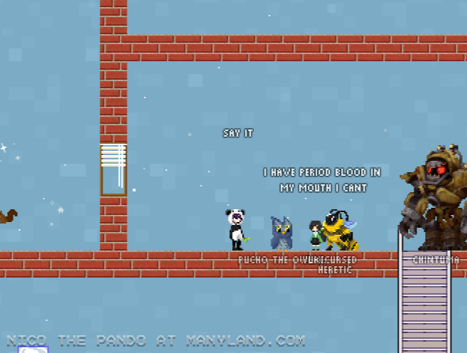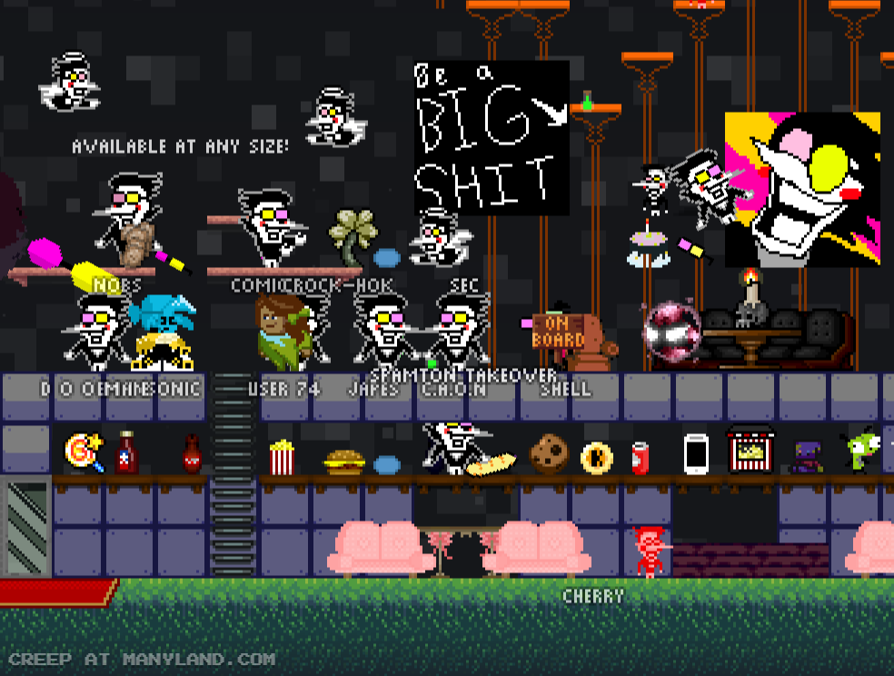 Unfortunately, Manyland – the universe we lived, scripted & drew together – had to close due to a lack of budget, which also meant a lack of budget for updates. Thanks to all of you and let us remember the good times with this Museum site! Together, in the 10 years from July 29th 2013 to February 29th 2024, we made over 800,000 areas, 6 million items, 900 million placements... and countless memories & friendships.