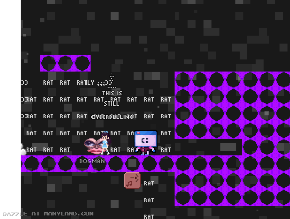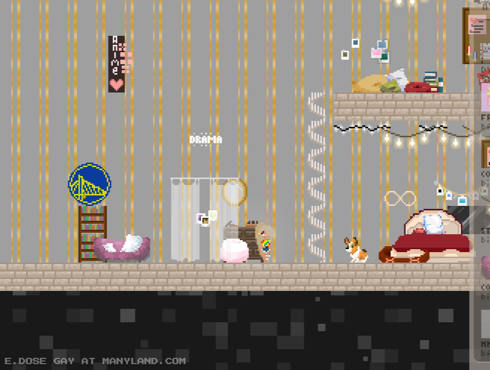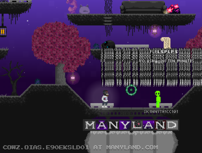 Unfortunately, Manyland – the universe we lived, scripted & drew together – had to close due to a lack of budget, which also meant a lack of budget for updates. Thanks to all of you and let us remember the good times with this Museum site! Together, in the 10 years from July 29th 2013 to February 29th 2024, we made over 800,000 areas, 6 million items, 900 million placements... and countless memories & friendships.
