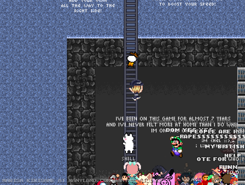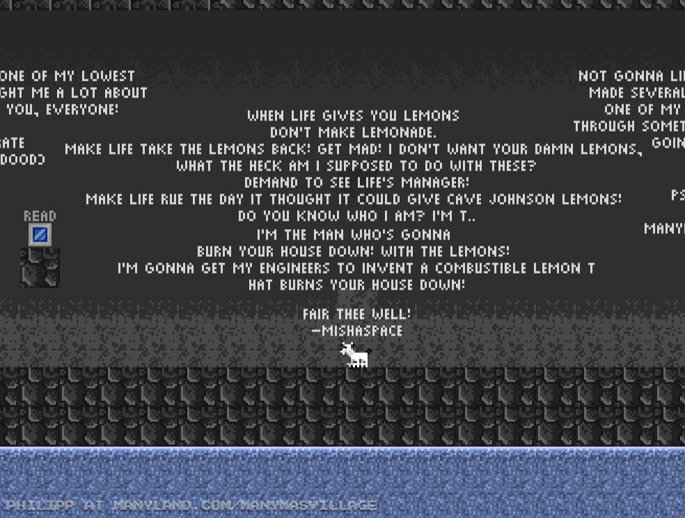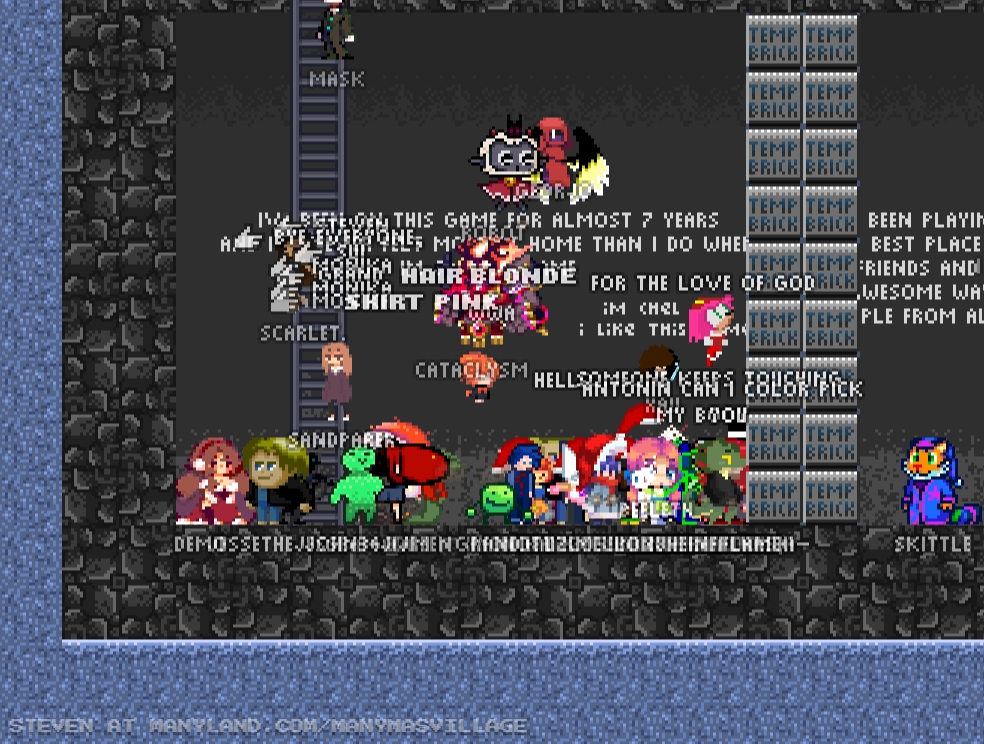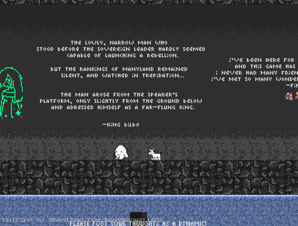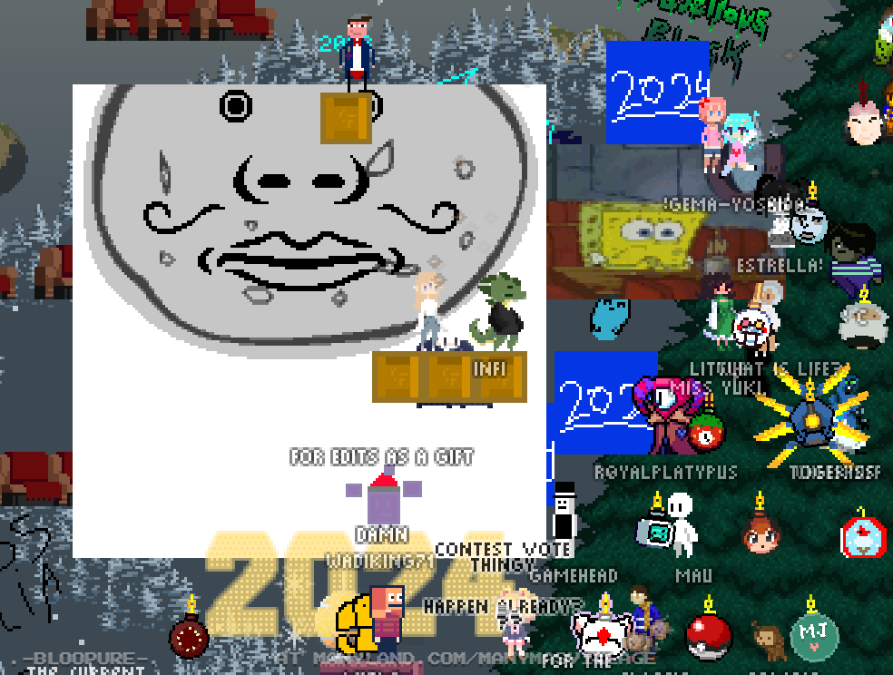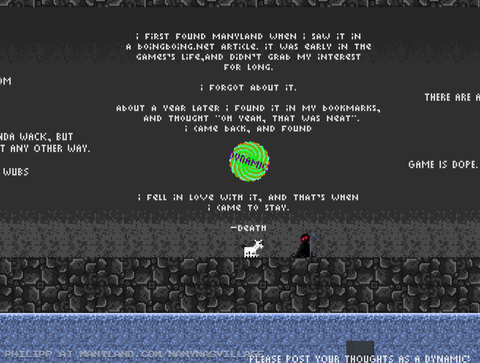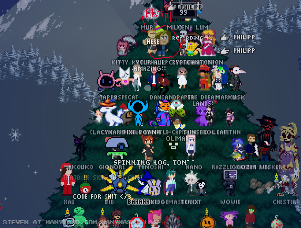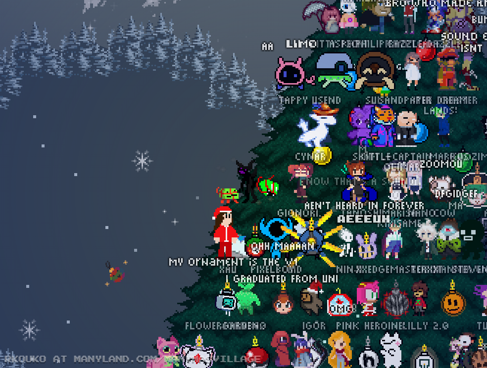 Unfortunately, Manyland – the universe we lived, scripted & drew together – had to close due to a lack of budget, which also meant a lack of budget for updates. Thanks to all of you and let us remember the good times with this Museum site! Together, in the 10 years from July 29th 2013 to February 29th 2024, we made over 800,000 areas, 6 million items, 900 million placements... and countless memories & friendships.