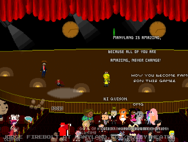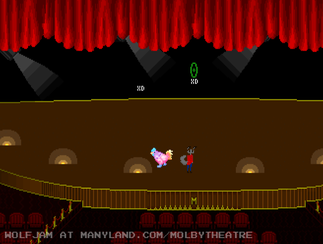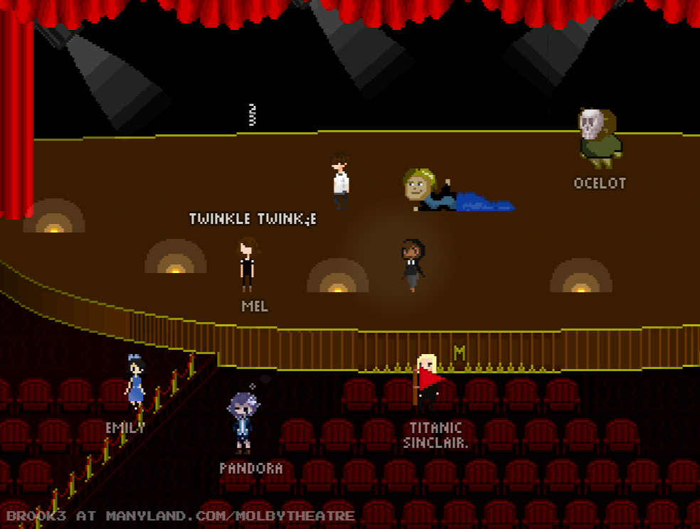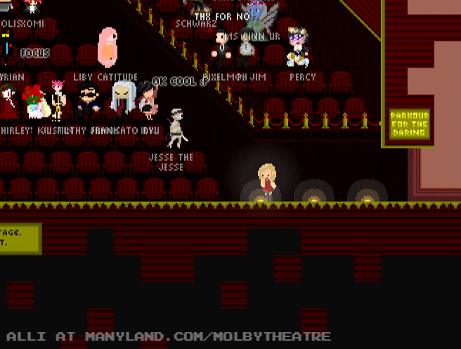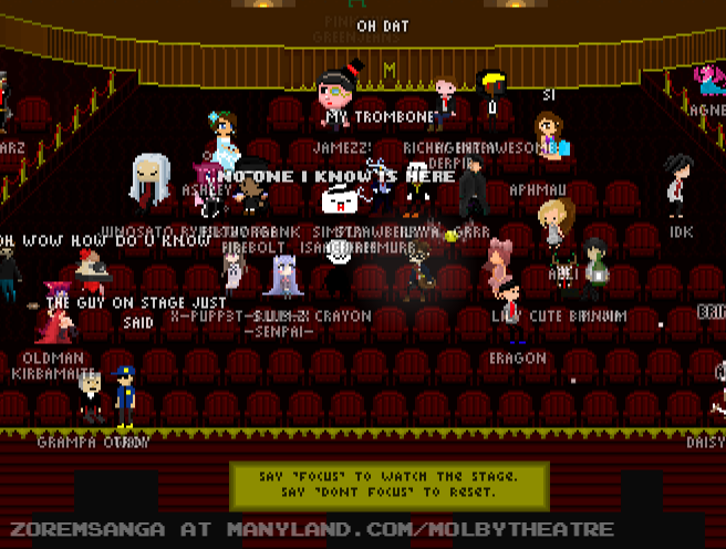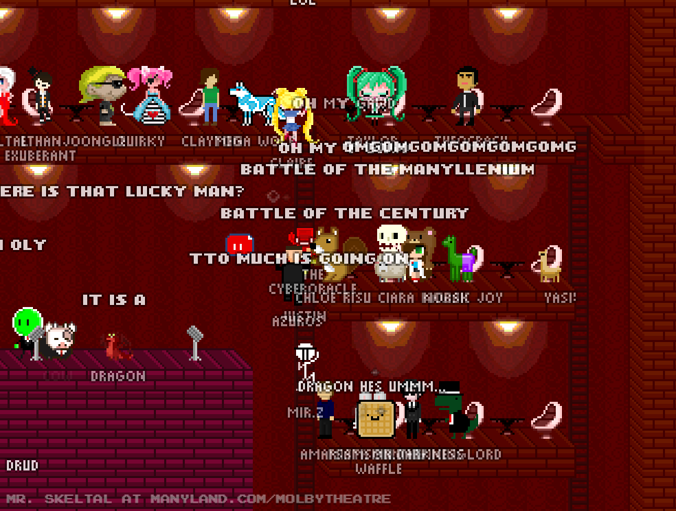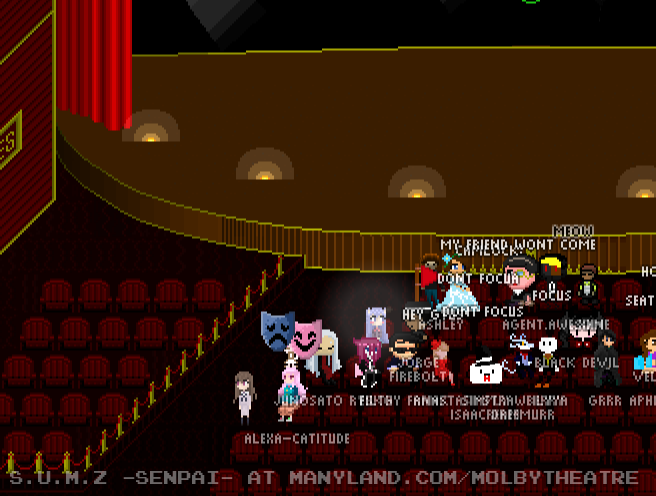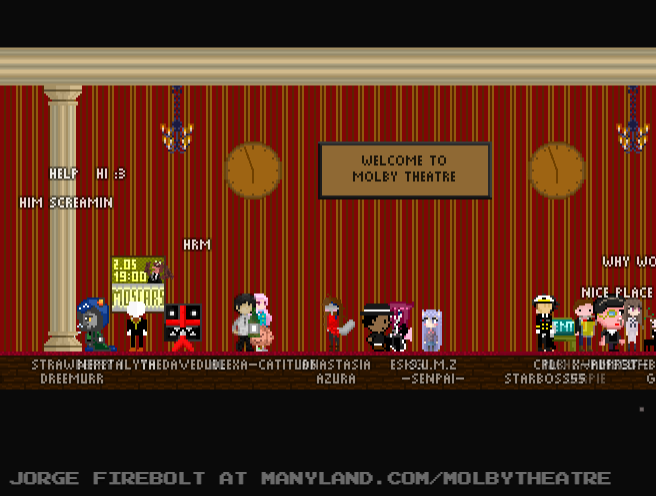welcome to the famous molby theatre! manyzen from all sizes join together to celebrate manyland!