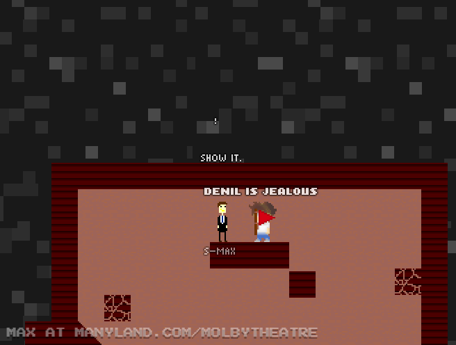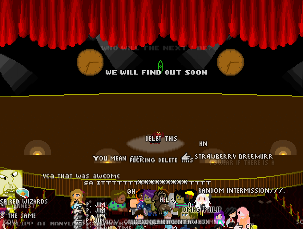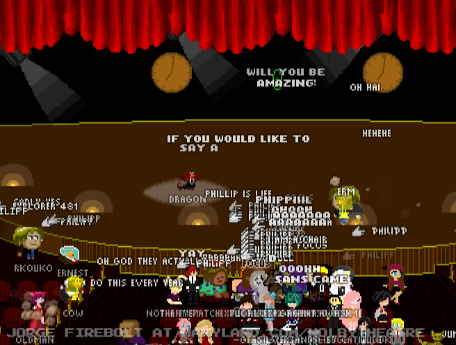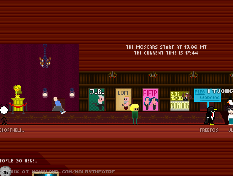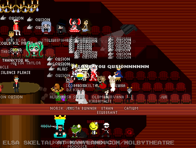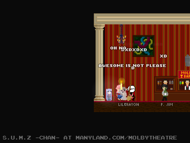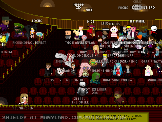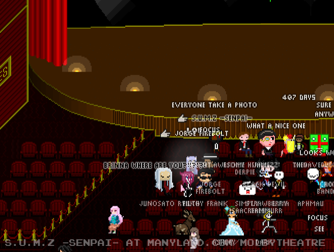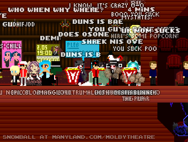welcome to the famous molby theatre! manyzen from all sizes join together to celebrate manyland!