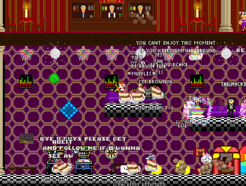 Unfortunately, Manyland – the universe we lived, scripted & drew together – had to close due to a lack of budget, which also meant a lack of budget for updates. Thanks to all of you and let us remember the good times with this Museum site! Together, in the 10 years from July 29th 2013 to February 29th 2024, we made over 800,000 areas, 6 million items, 900 million placements... and countless memories & friendships.