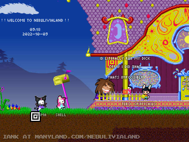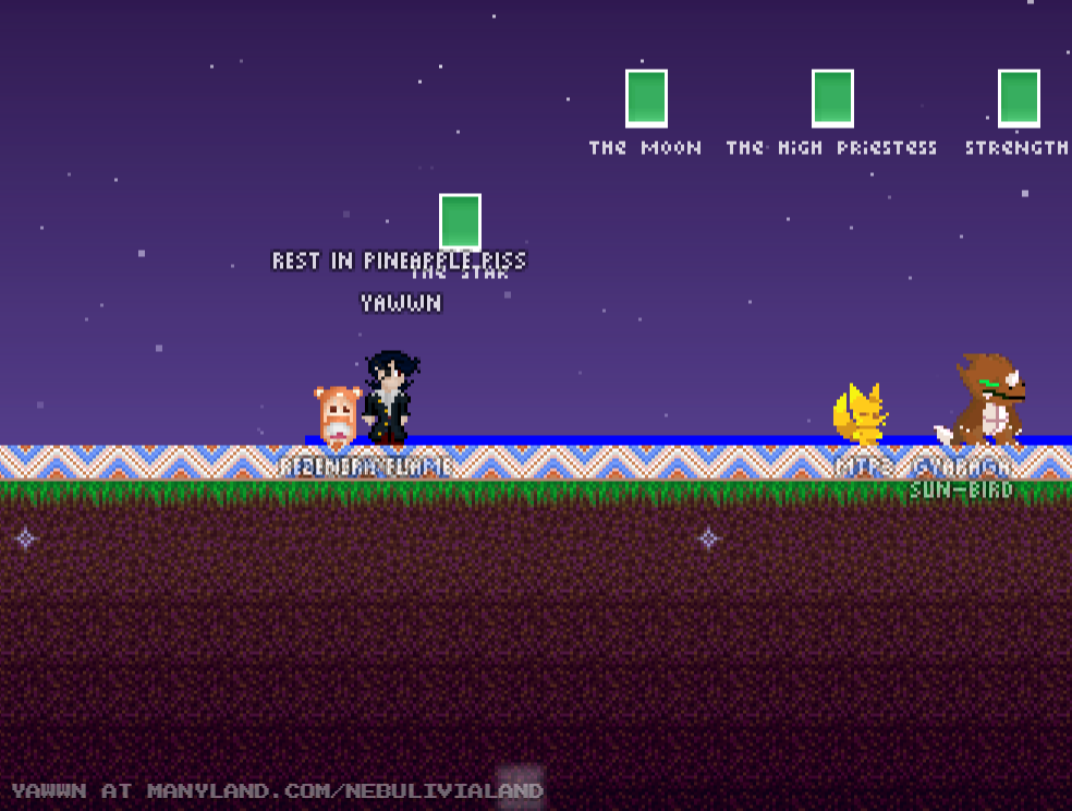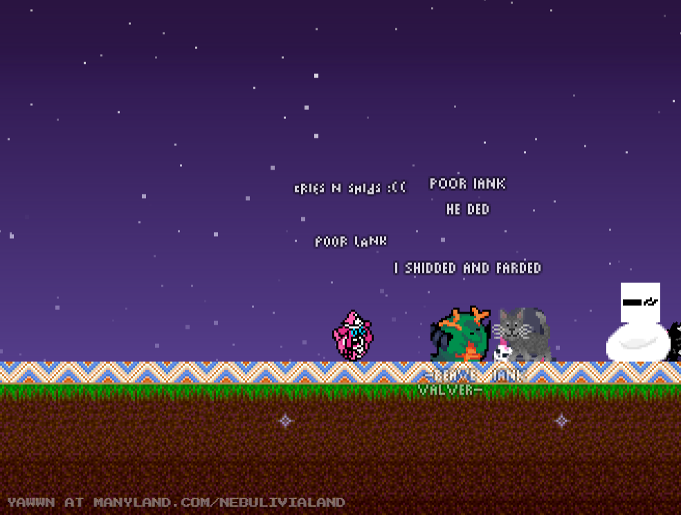 Unfortunately, Manyland – the universe we lived, scripted & drew together – had to close due to a lack of budget, which also meant a lack of budget for updates. Thanks to all of you and let us remember the good times with this Museum site! Together, in the 10 years from July 29th 2013 to February 29th 2024, we made over 800,000 areas, 6 million items, 900 million placements... and countless memories & friendships.