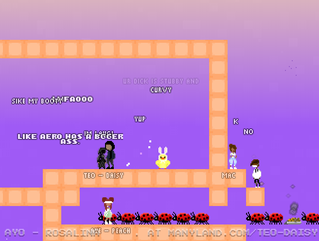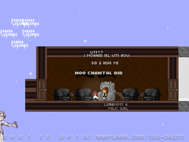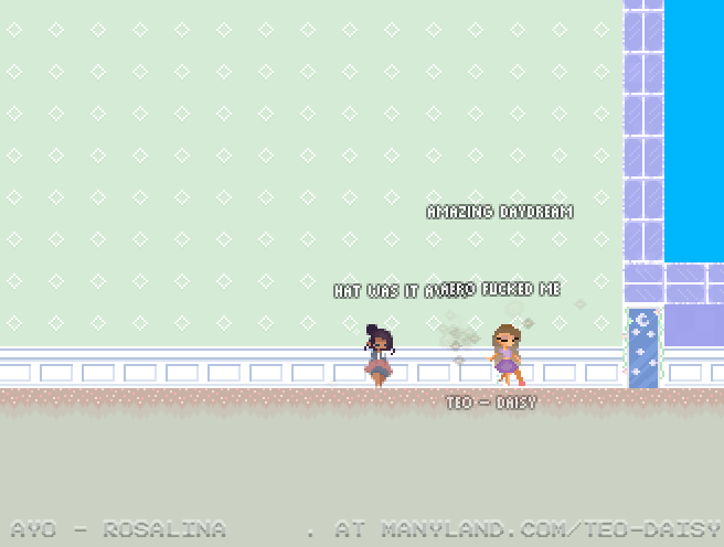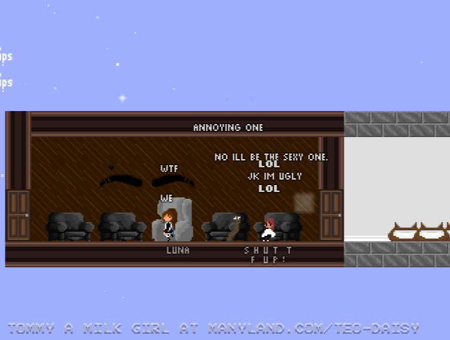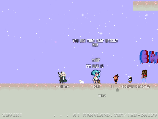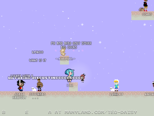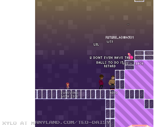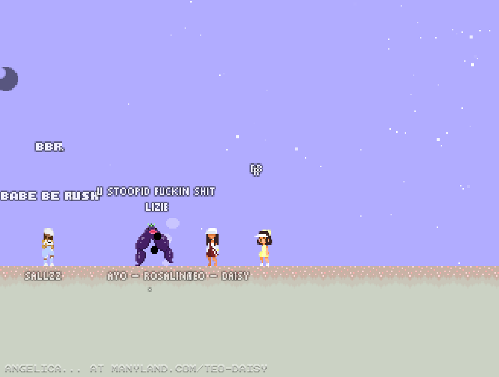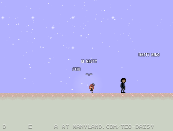 Unfortunately, Manyland – the universe we lived, scripted & drew together – had to close due to a lack of budget, which also meant a lack of budget for updates. Thanks to all of you and let us remember the good times with this Museum site! Together, in the 10 years from July 29th 2013 to February 29th 2024, we made over 800,000 areas, 6 million items, 900 million placements... and countless memories & friendships.